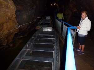 The citadel was constructed in the year 1000 as a fortress, then converted into a chateau in 1217. The Counts of Foix must have loved steps ! Anyway it has a very interesting museum and fabulous views from the towers. Sunday mass has just concluded as we walk back down the hill and pass the abbey, so we pop in for a wander and Pam lights a candle. We spend the rest of the morning wandering the old town, it’s half timber houses and stonework. Then it’s back to the Hymer and we drive out to the caves at Labouiche. It’s an interesting afternoon the cave tour is done by boat. As the cave or grotte follows an underground river.