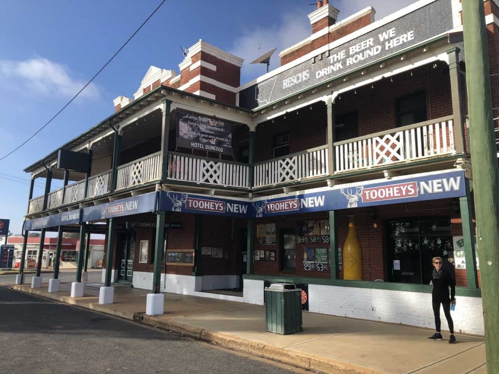 So we arrive safely in Dunedoo, find the caravan park which would be hard too miss. The office is closed so we help ourselves to a spot. After setting up we go for a walk up town. It must be a regular tourist stop as there are a couple of bakeries and coffee shops as well as a ladies fashion shop that has Pamโs attention.