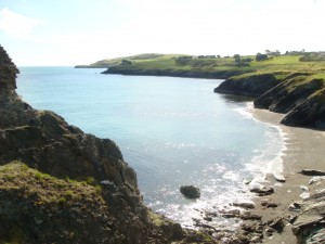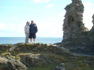 We drive through town and don’t find a parking spot and end up on the headlands above the village. The view of the breakwater and harbour is picture perfect. It’s a beautiful day as well, almost no breeze and the sun is shinning. We walk around the memorial, as we leave we see a sign for the Black Castle and off we go. The Black Castle is an ancient ruin, little is left but it stands on a beautiful spot overlooking the sea.