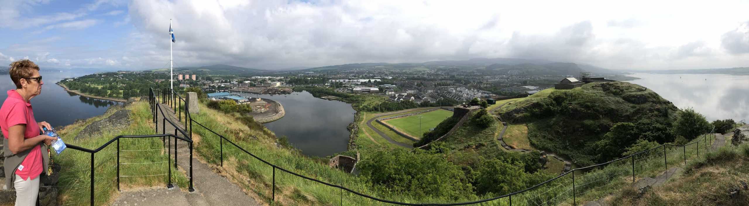 After our big day in Glasgow yesterday we need to move on. Firstly however, we should visit Dunbarton Castle since we have been parked in itโs carpark for two nights. Another beautiful morning greets us, cannot believe this weather.
