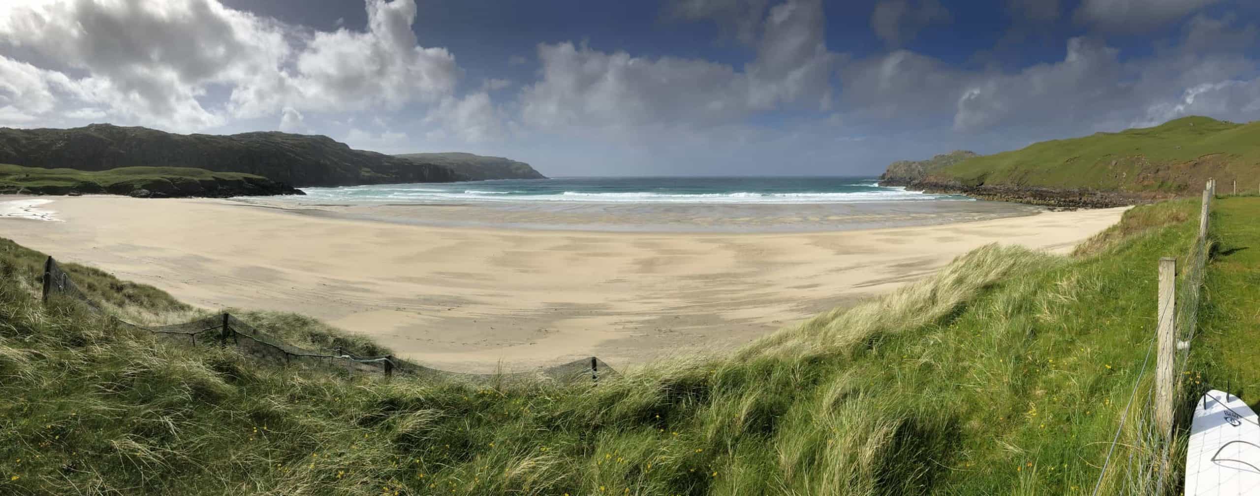 As we approach the west coast we turn on the B8011 and Miavaig. The Lonely Planet tells of some beautiful beach up there and we find this one at the village of Cliff. Calling it a village, maybe more of a place really. Two or three isolated houses, but a bitimen car-park, a garbage bin and this view !
