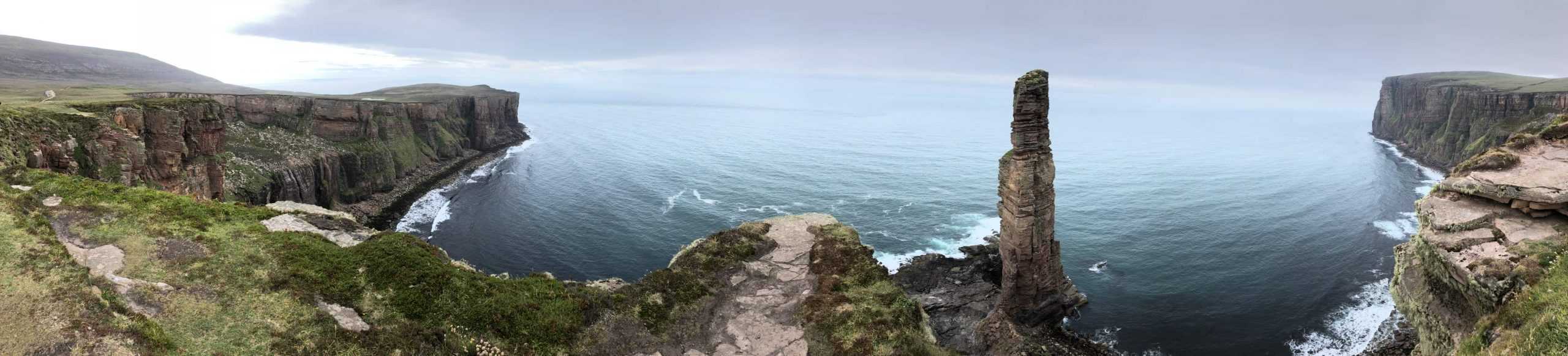 Itโs been a long day and we are all happy to see our little ferry turn the point. The sun is out again and we have seen the Old Man of Hoy.