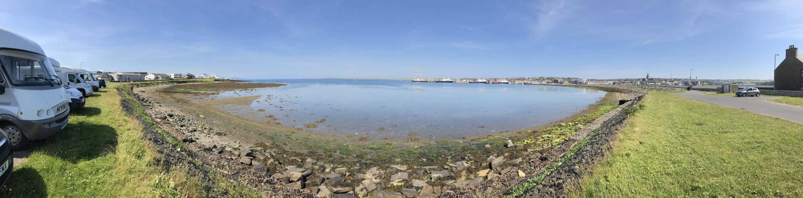 So we spend a quiet evening with four other motorhomes overlooking Shapinsey Sound in Kirkwall. That was until about 5am when a seagull decided to start playing with our radio antenna on the roof. After 25 days on the road we need to do some laundry, so we will have a wander around Kirkwall while the machines do there thing. Hopefully, a relaxing afternoon.