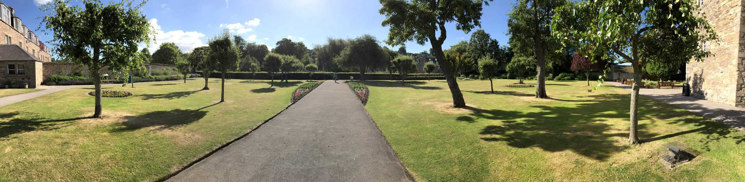 On the far side of the garden we find Jedburghโs Rock of Ages. Carved 1300 years ago, this stone was the base for a larger cross.