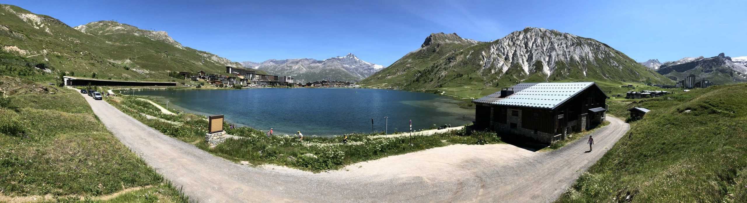 When we spot this lake we decide to park and go for a walk. We soon discover this resort village is Tignes.