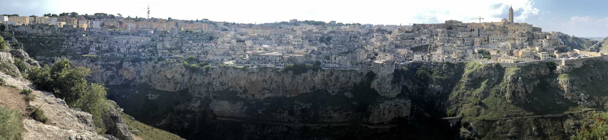 What is Matera all about ? The guide states the ridge along which Matera stands has been occupied since paleolithic times, for 7,000 years in fact. The ridge is riddled with small caves, the soft limestone being excavated by generations of habitants to form houses, known as sassi.
