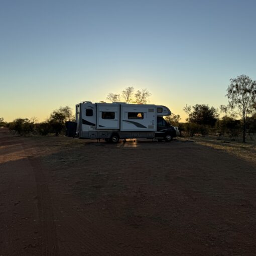 Our day of riding Goondiwindi cycleways complete, we return to the Jayco to find we have lots of new neighbours. We pack away the bikes and get the BBQ going, steak and sausages tonight. Cannot remember where we brought them, but the townโs name probably started with C which limits it to half the towns in Queensland.