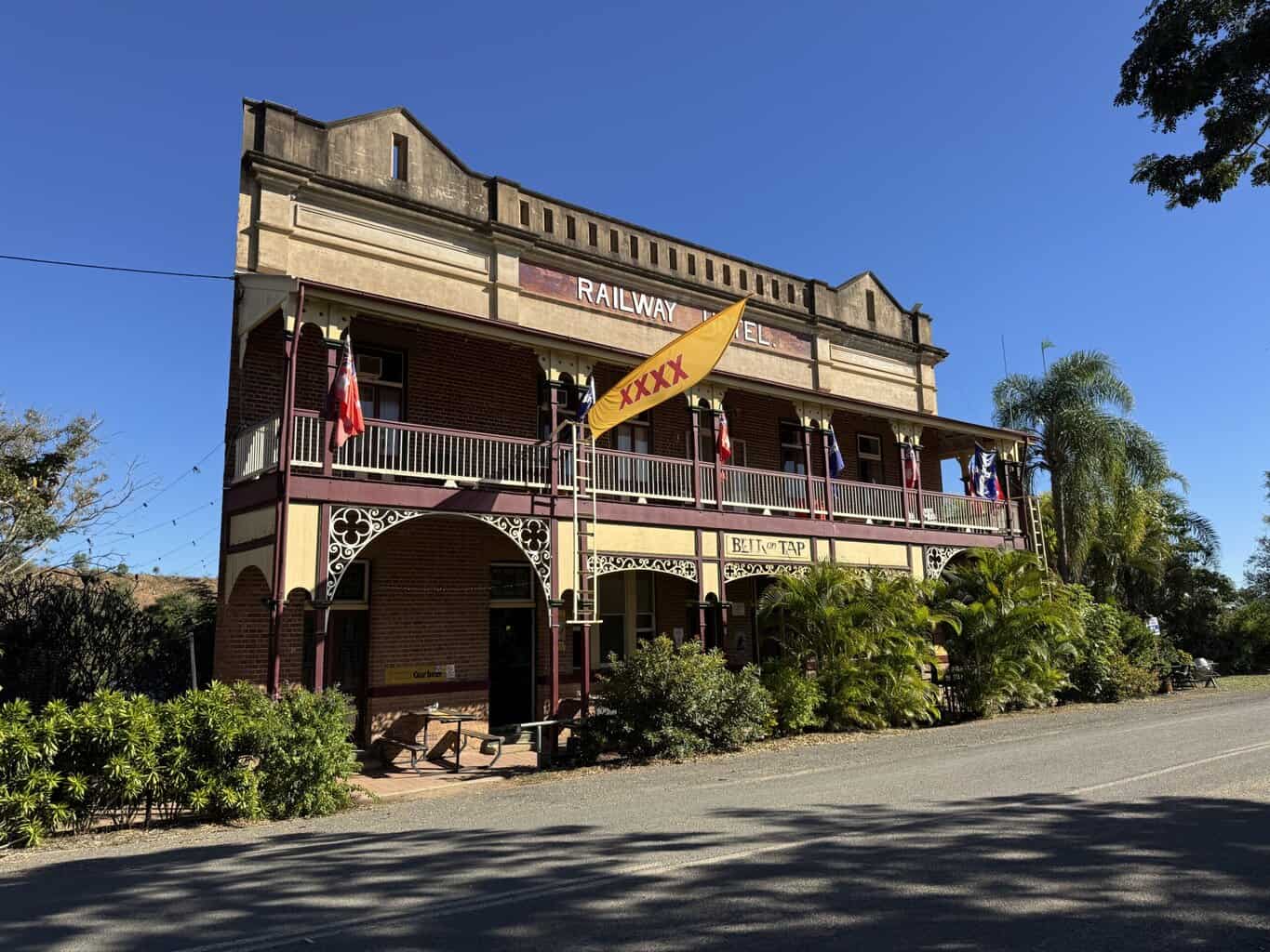 The Railway Hotel offers a free camp, the publican Michael is welcoming and directs us to our campsite which is out the back. The Railway Hotel (circa 1901) is heritage listed. The grounds are scattered with old cars and machinery, amongst all this, numerous old petrol bowsers.