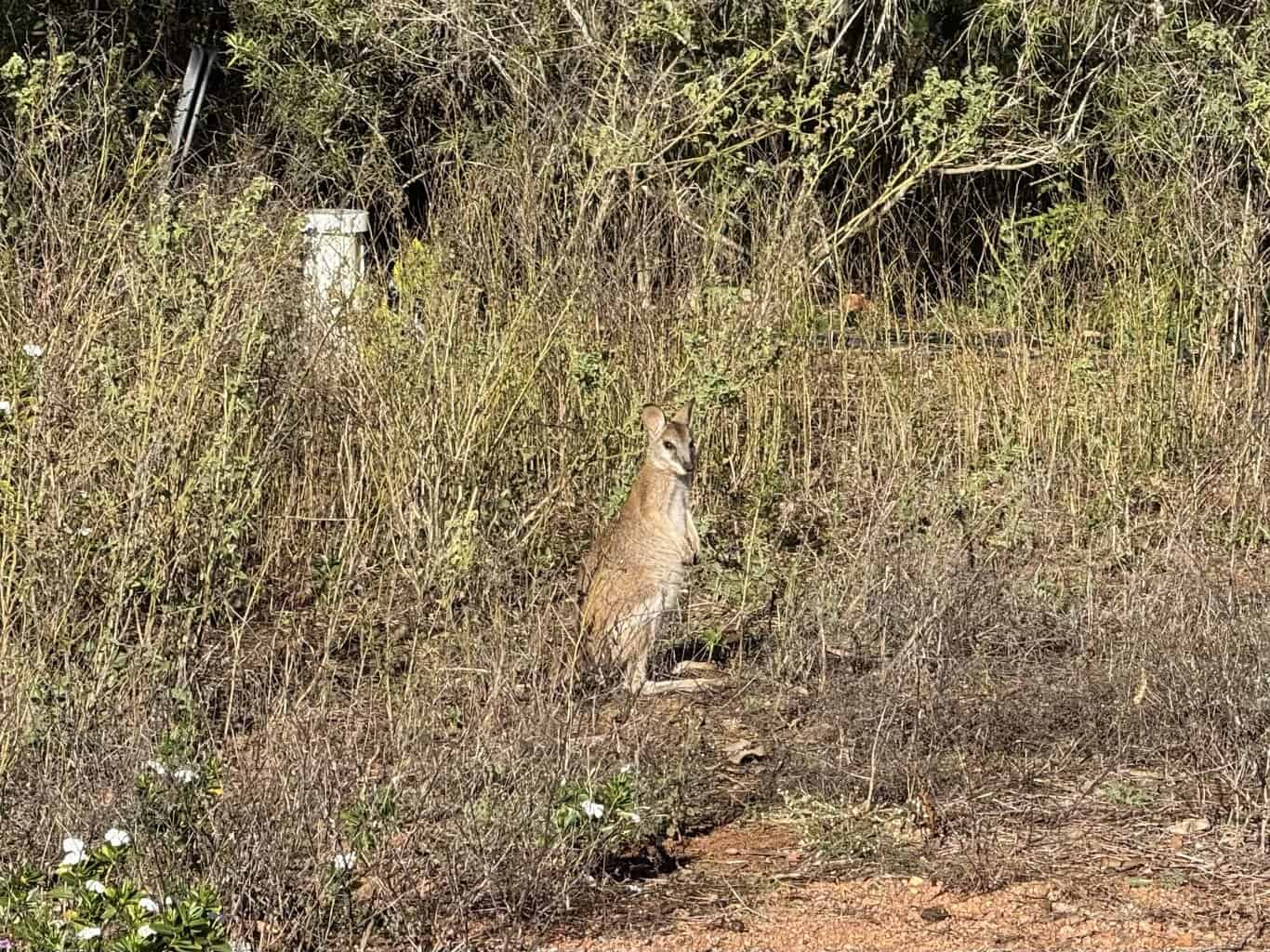 The sign to the โold arch bridgeโ sounded promising, but it was a little underwhelming. No Hogwarts Express has passed through here for 80 years but we did find a colony of fruit bats making a dreadful racket. Apart from the bats we see lots of small rock wallabies bounding around the scrub as we walk by and more Indian Peafowl running here and there than we could count. Too quick for a photo unfortunately and presumably too quick for a fox either.