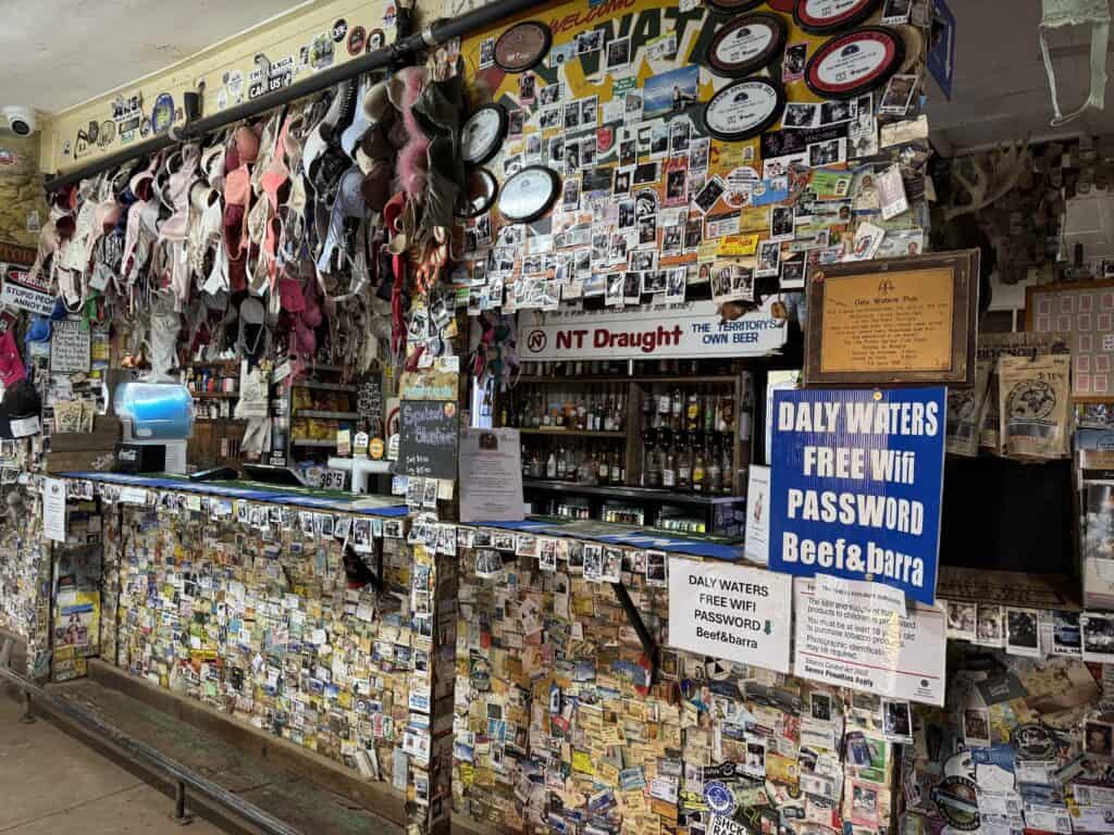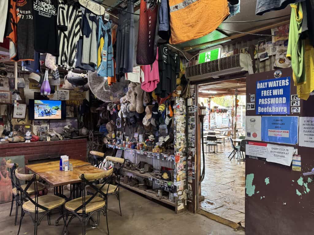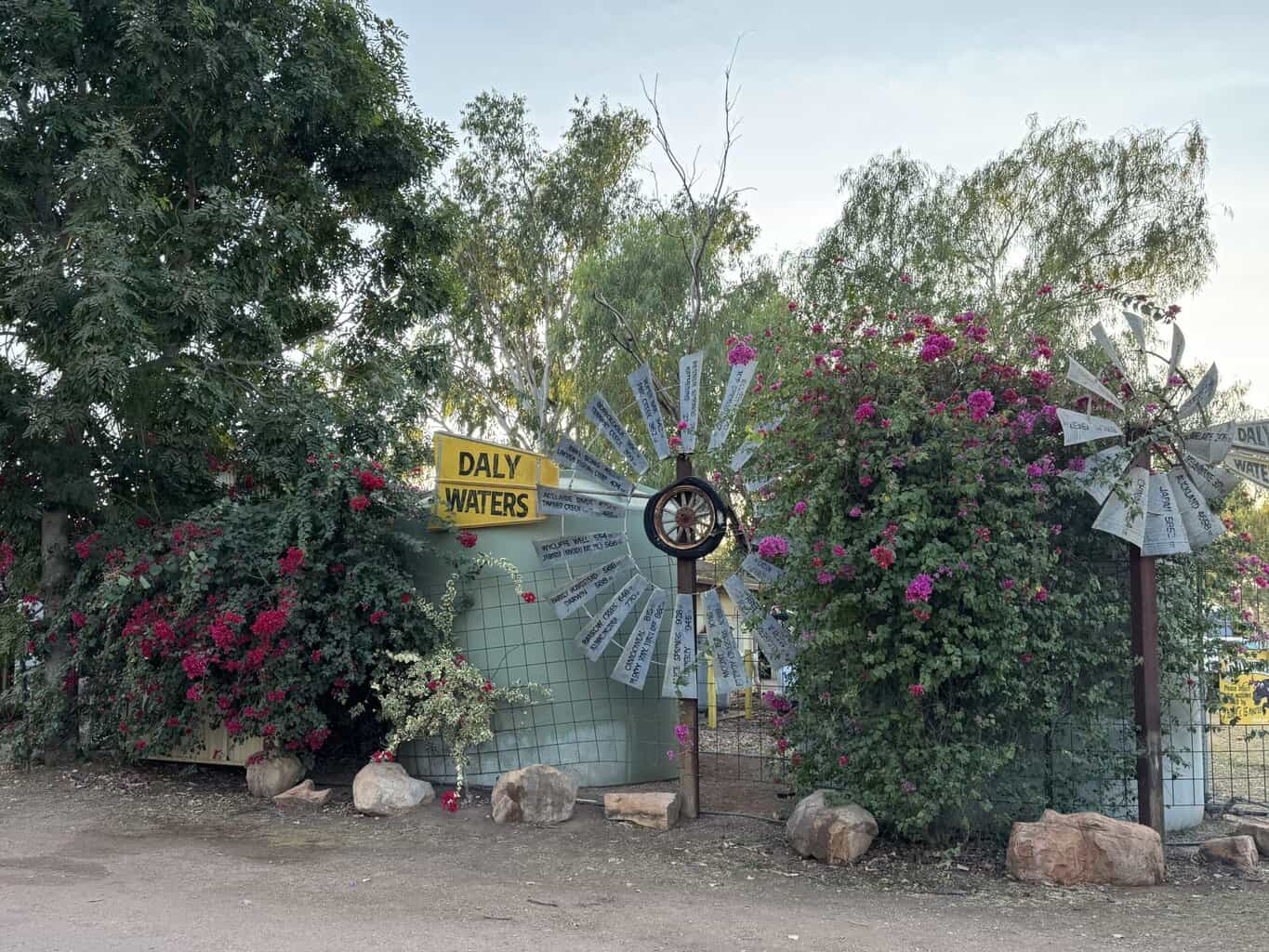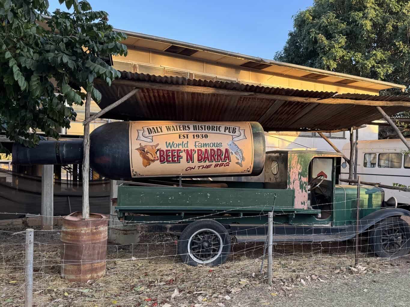 Two hours and 200 kilometres later we turn off the Stuart Highway for Daly Waters. Everyone with a caravan or motorhome in the NT appears to be in Daly Waters as we arrive, The place is buzzing and there are people everywhere.