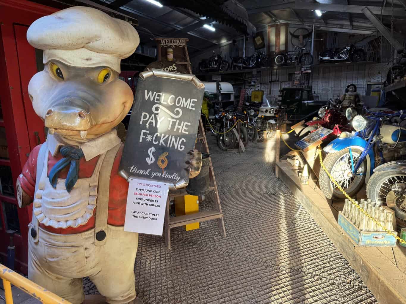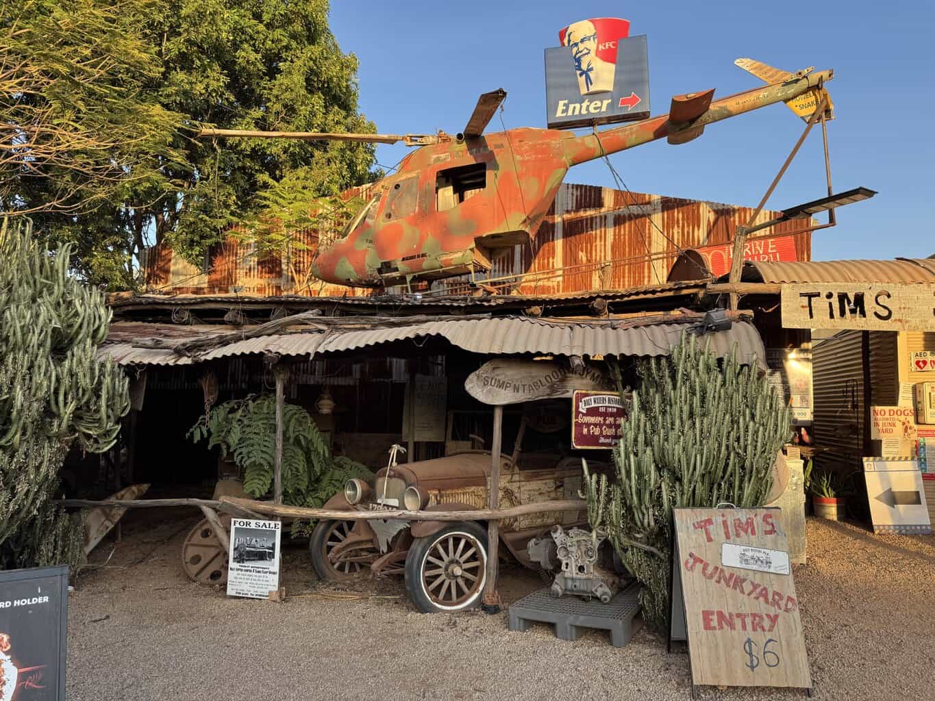 The best thing about Daly Waters is Timโs Junkyard across the road from the pub. I could easily spend half a day in here chatting to Tim if he wasnโt already dead.
