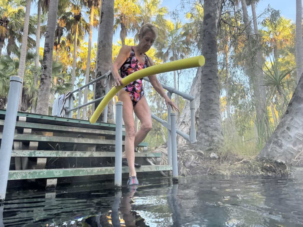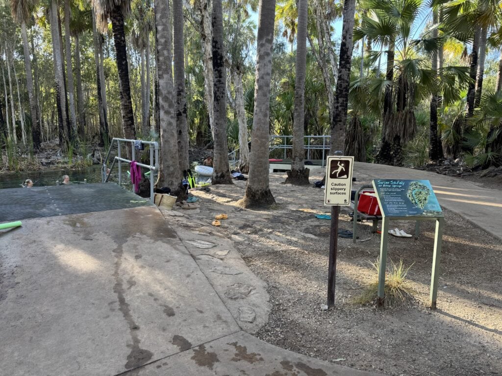 Mataranka is a mad house with caravans stopping, turning trying to park and whatever. Itโ€™s the last of the school holidays here in the NT, so hopefully it will be a little quieter next week. We drive straight to the toilet drop and do what needs to be done. Thinking we will have a look at Mataranka on our way back we turn for Bitter Springs just a couple of kilometres up the road.