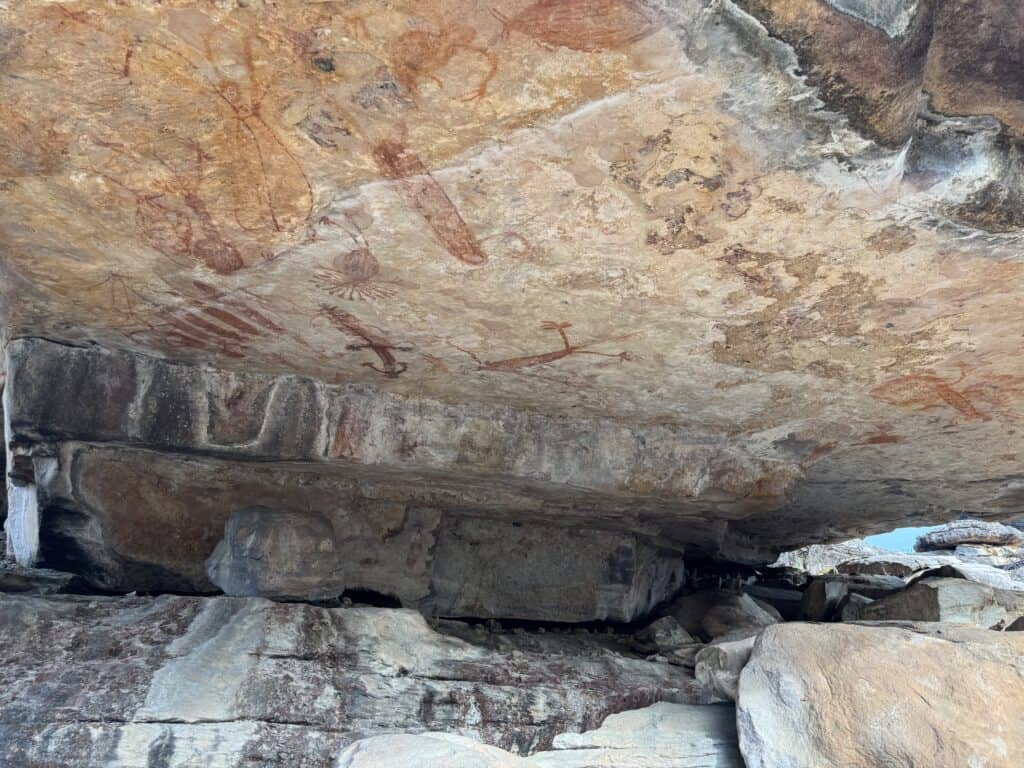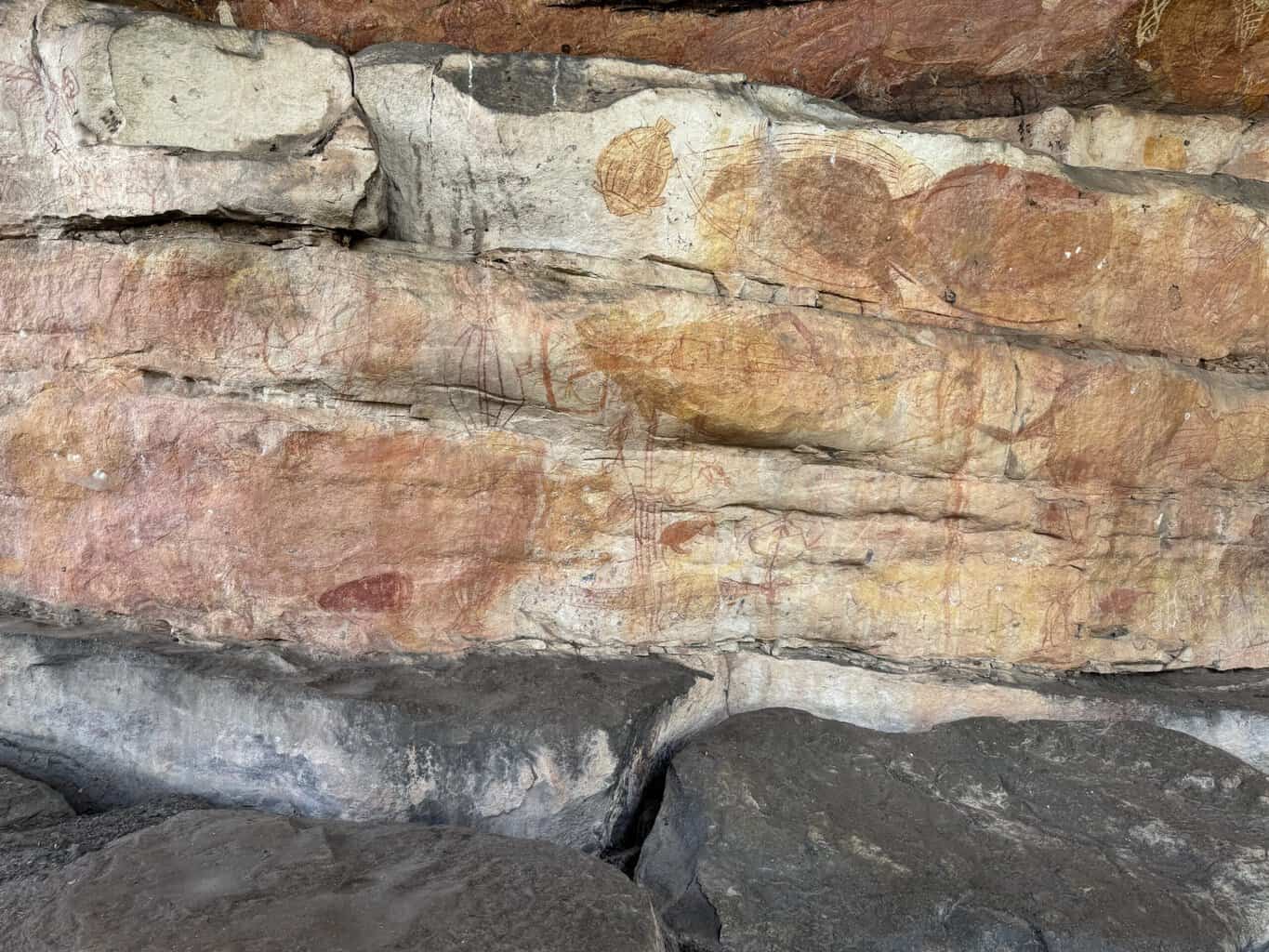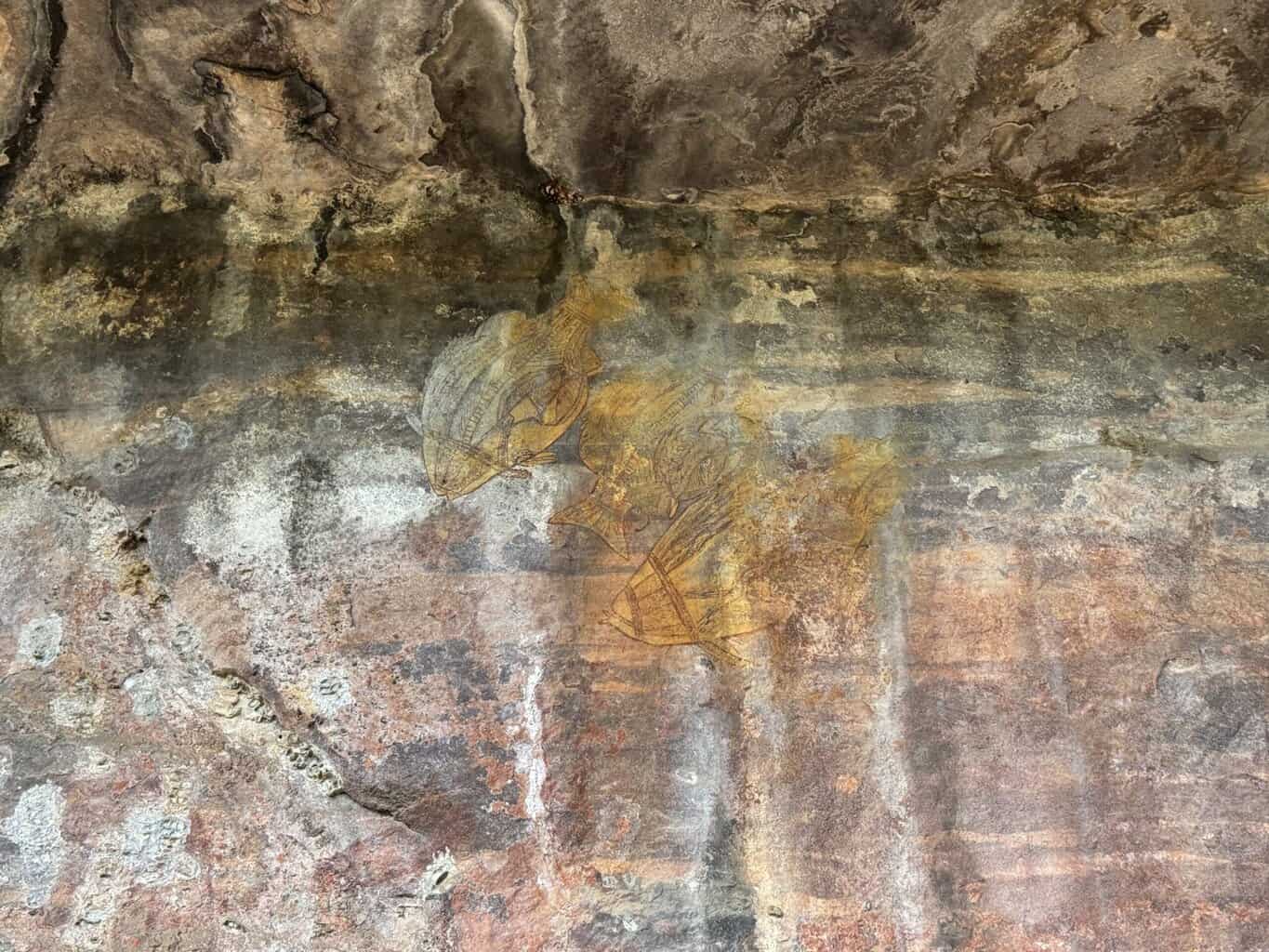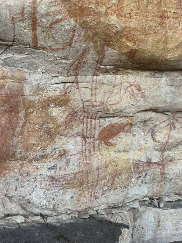 Following the one kilometre nature walk through the site there are a series of galleries painted on the overhangs and cliff faces. We found them fascinating. Visually the longer we stood in certain galleries the more images became apparent.