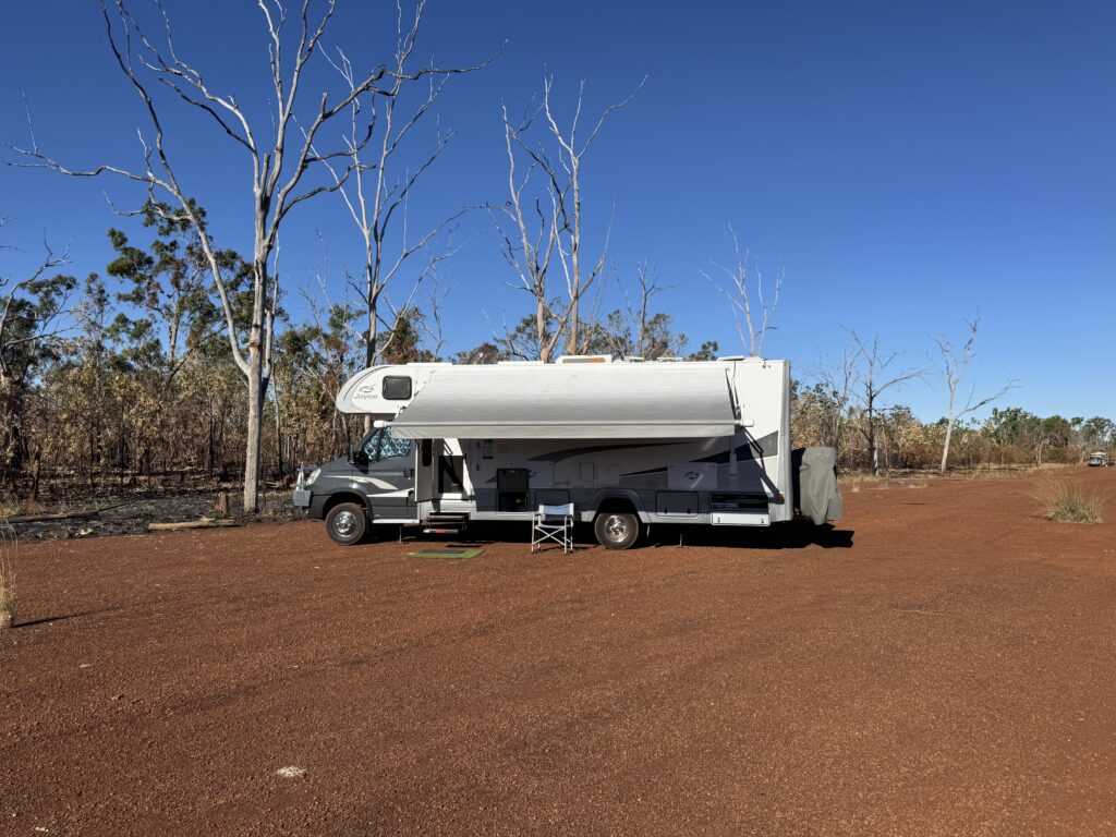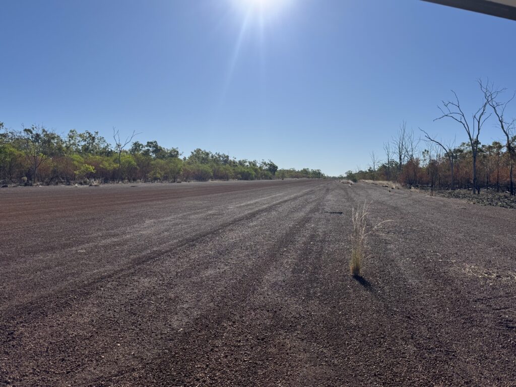 Almost 300 kilometres and 4 hours later we turn into a wild camping spot near Larrimah. Just a speck on the map now but Gorrie was the RAAF largest base from 1942 until well after the end of the WWII. Thereโs nothing left now but a 2 kilometre long runway which 80 years later is still in good order.
