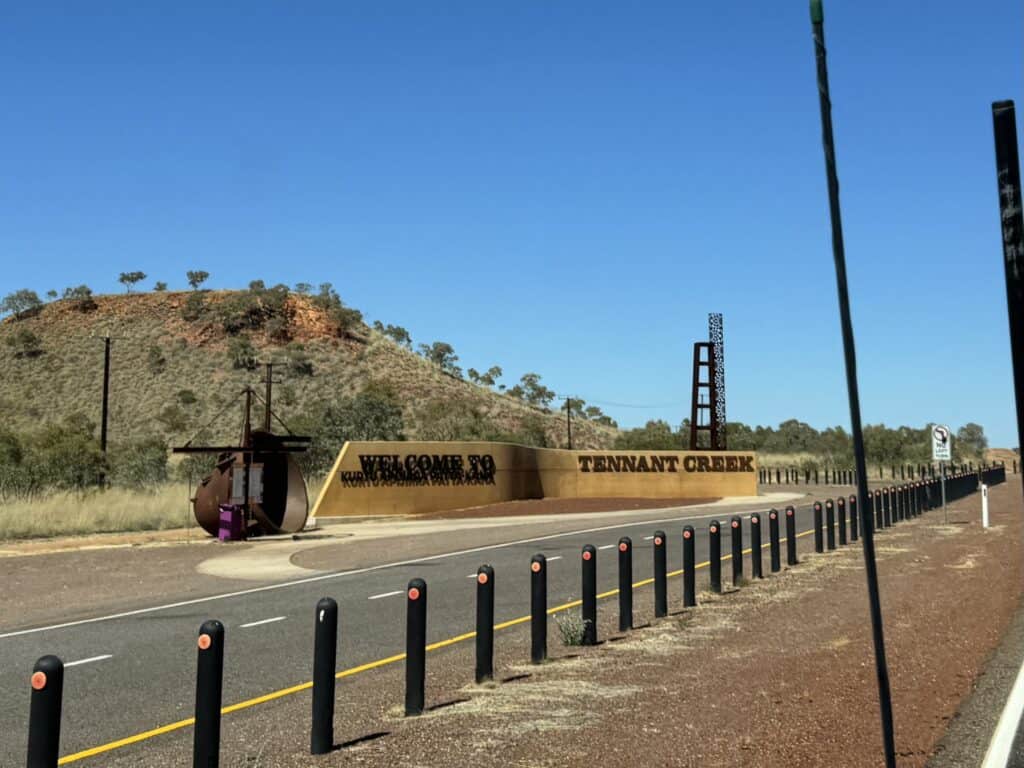 We donโt wander too far in the morning before breakfast and getting the Jayco ready for the road we make for Tennant Creek. Itโs a two hours drive with a coffee on the way.