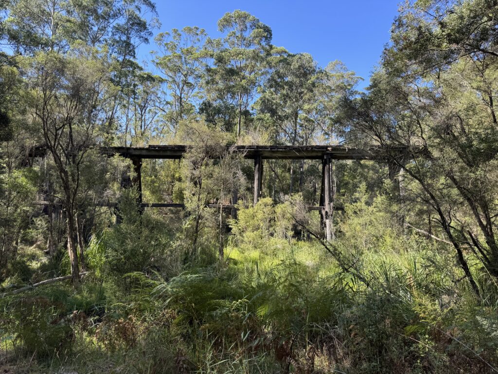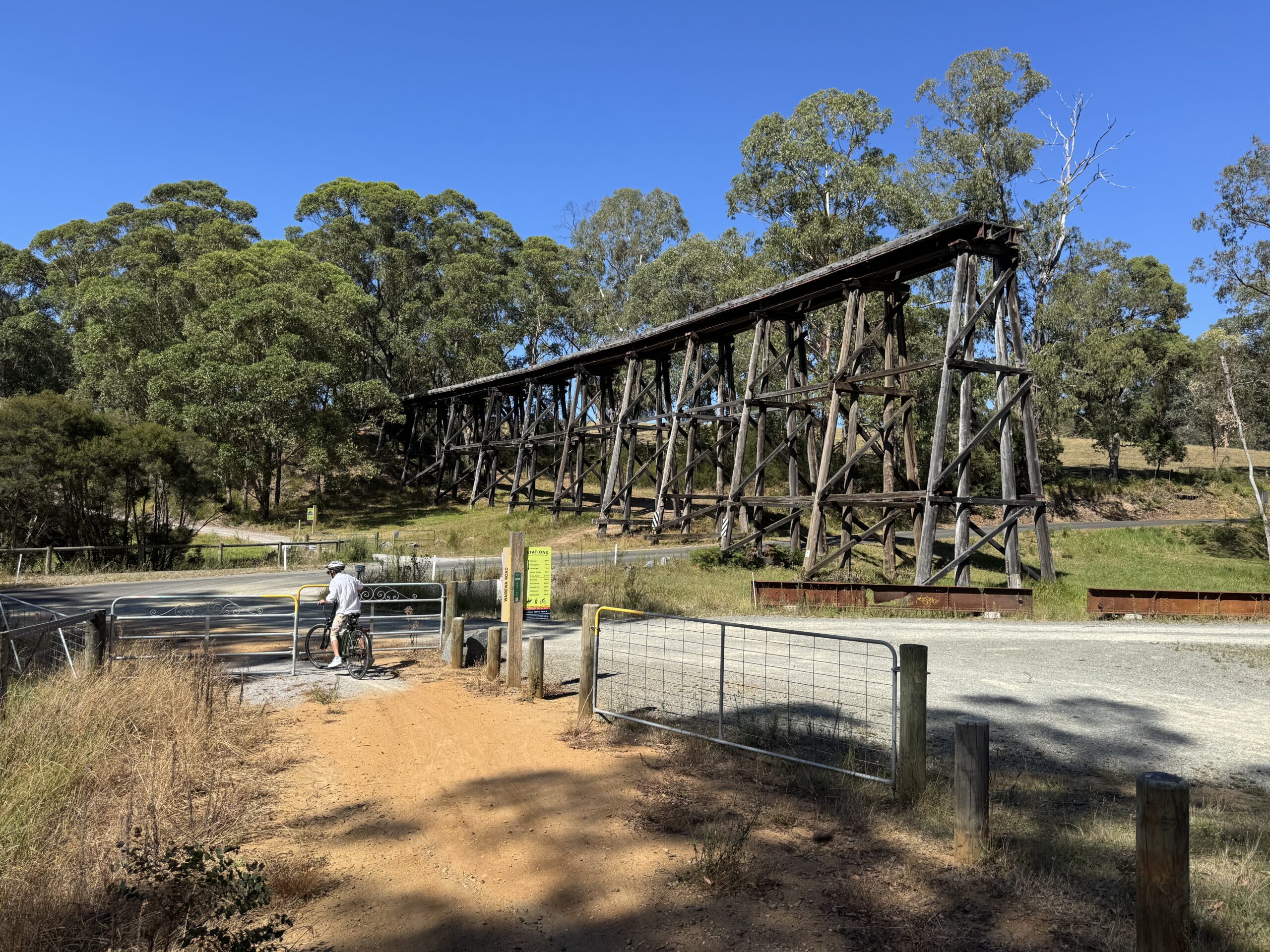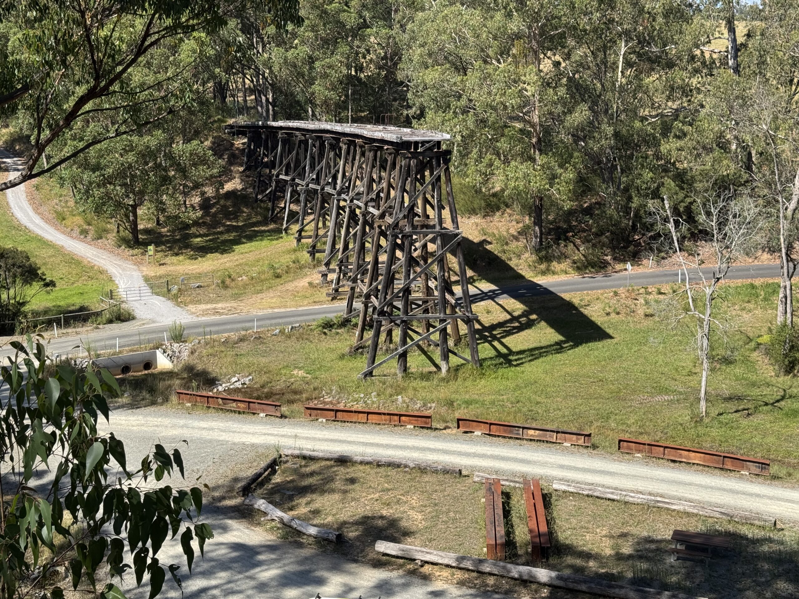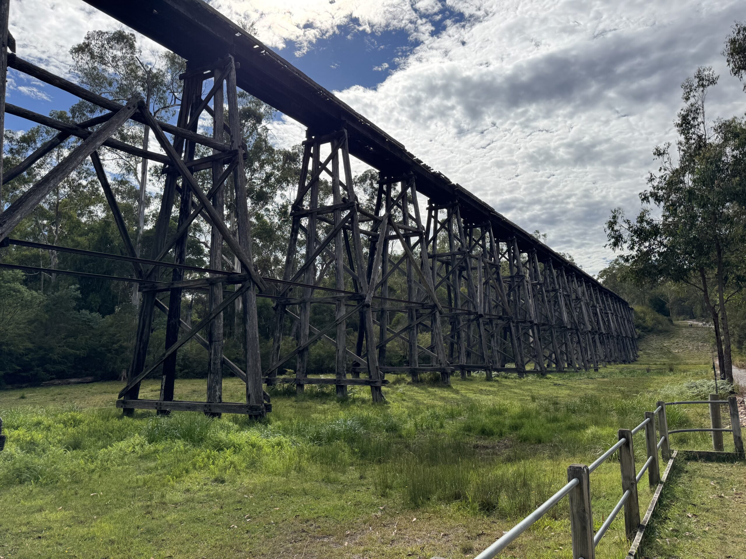 On the second day we head west for Colquhoun both of us still feeling a little stiff from the previous day. Thereโs only one wooden trestle bridge today but itโs a beauty. The Stony Creek Trestle Bridge was constructed in 1916 at 247 metres long and 20 metres high it was the largest rail bridge of its type in the state.