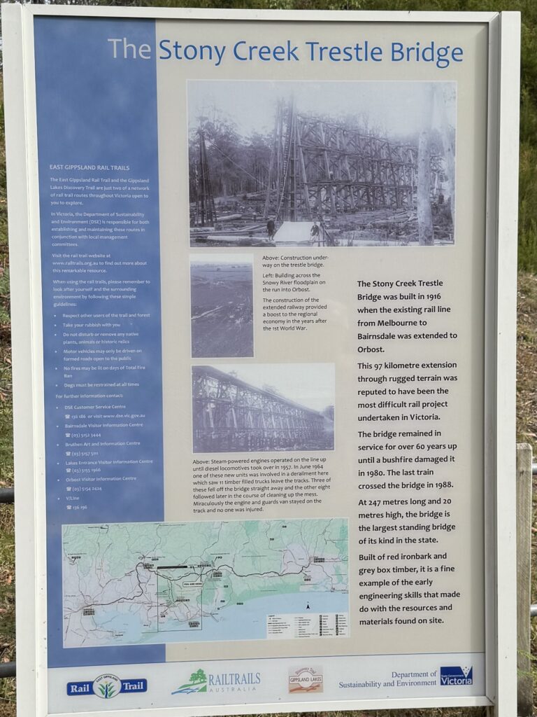 So over the next two days we ride 60+ kilometres of rail trail. The first day we ride east to Waygara to the station we rode out to from Orbost on our earlier trip. Apart from the red-belly snake sunning it self in the middle of the track it was uneventful the main points of interest are the old timber viaducts we pass.