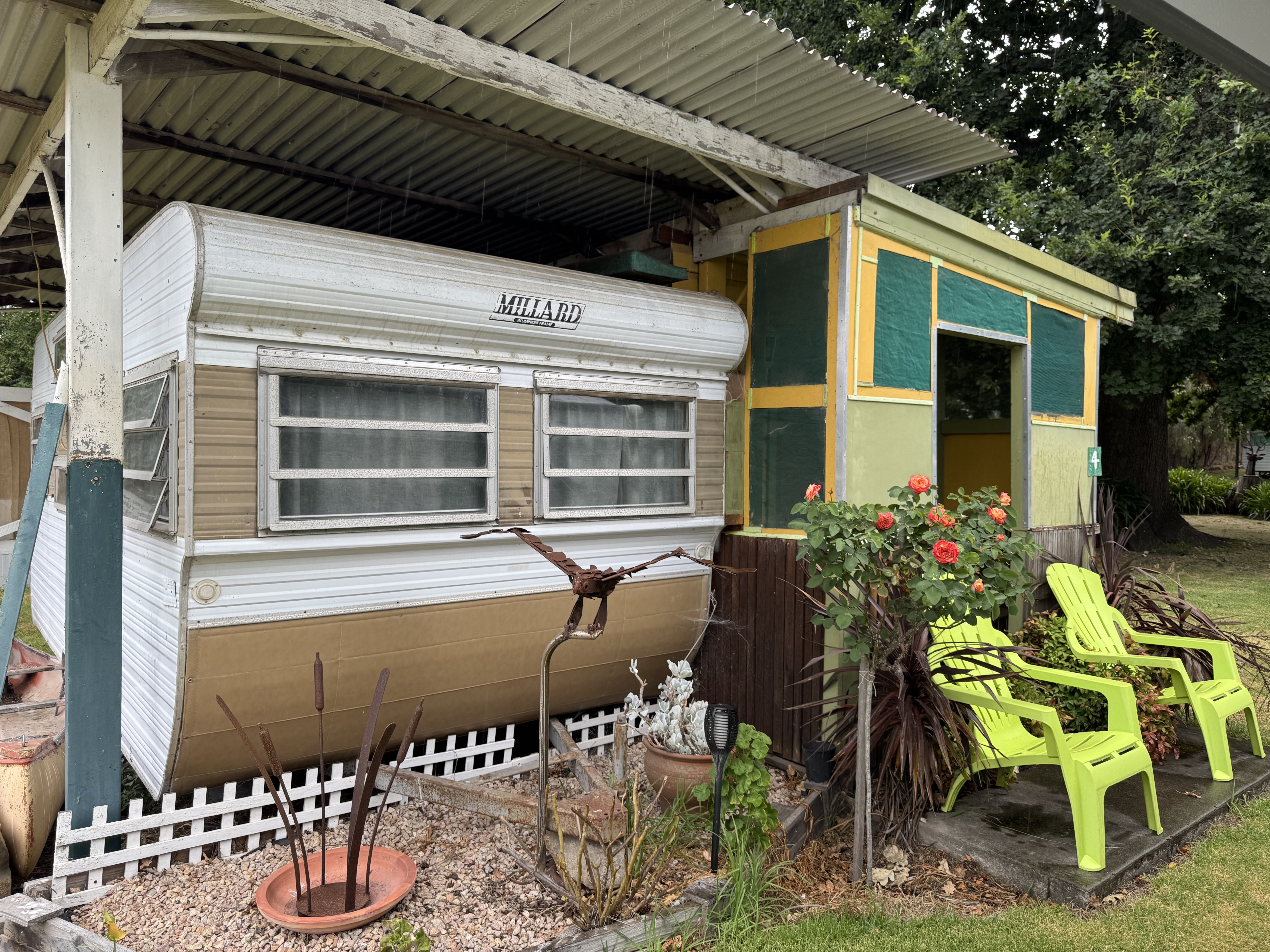 Back to the caravan park at Nowa Nowa, itโs an eclectic collection of old caravans, sculptures of this and that and relocated bit and pieces. The owner Steve appears a little quirky as well, he has a long list of rules but the first is โNo Childrenโ which suites us just fine.