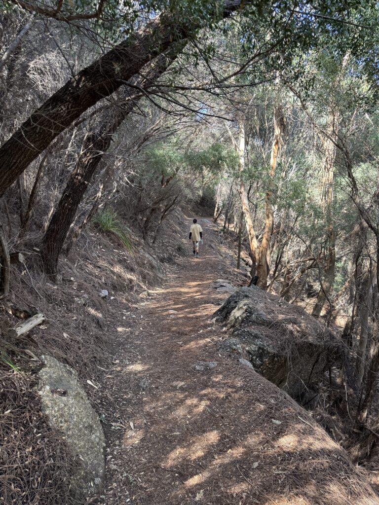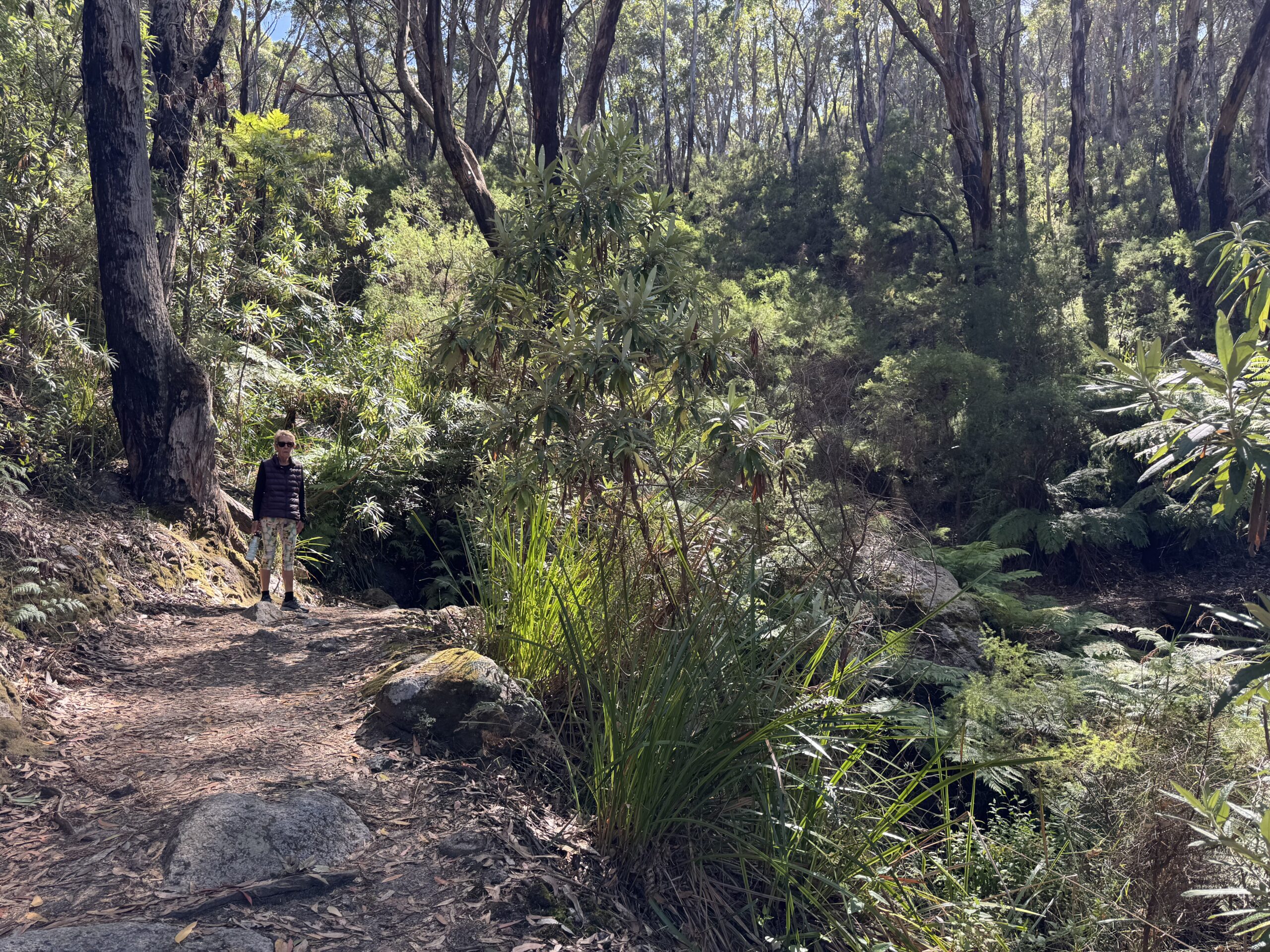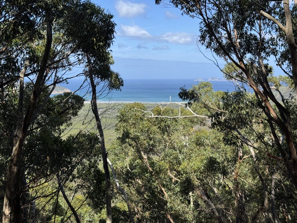 The weather changes overnight itโs much windier next morning as we make the drive back to Tidal River again. Soon enough we park the car at the Lilly Pilly car park and start up the Mount Bishop track.