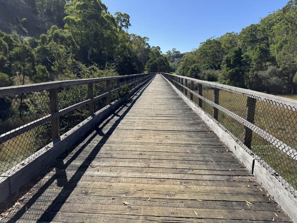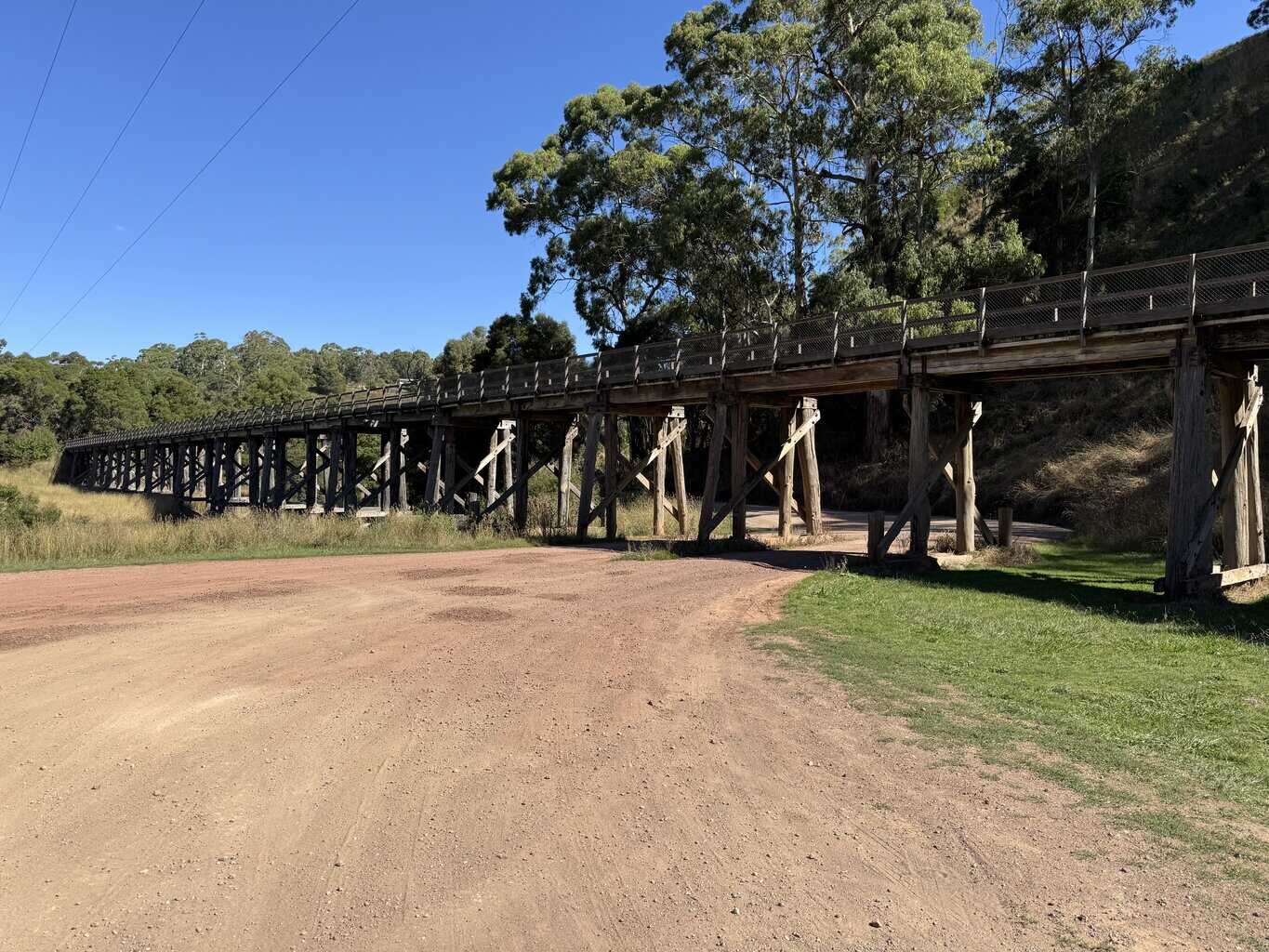 No point wasting the afternoon so we take the Suzuki for a drive to Timboon a village 5 kms north of the farm. Itโ€™s the starting point of the Timboon to Campbelltown Rail Trail. So no bikes but we walk off to explore the old trestle bridge nearby.