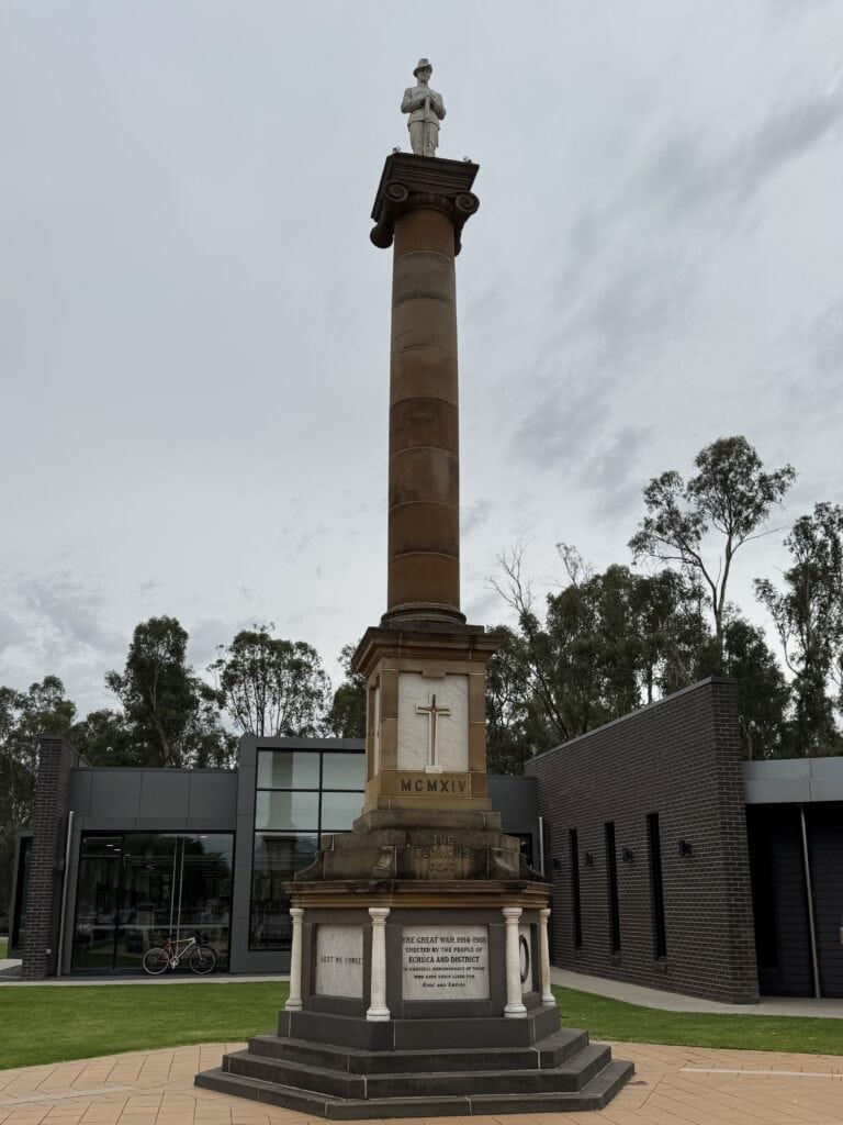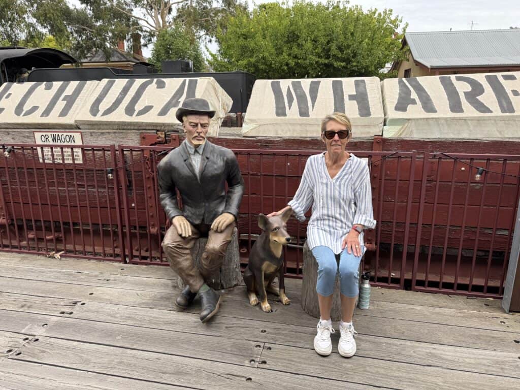 After a walking the shops we drive on to Port Echuca (less than a km). The port is tourist central and finding a parking spot a challenge. We park near the library just across from the cenotaph.