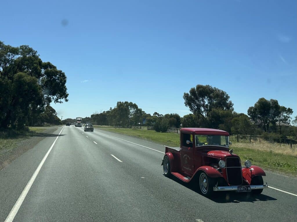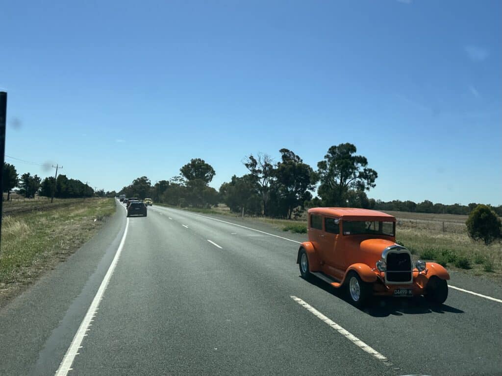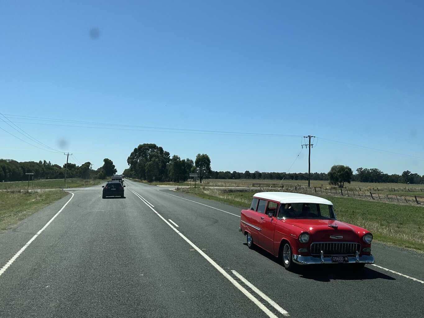 From Ararat the road improves slightly as we continue on to Echuca. We are amazed by the numbers of old American cars heading in the opposite direction, later finding out there was some huge car rally was held in Moama over the weekend.